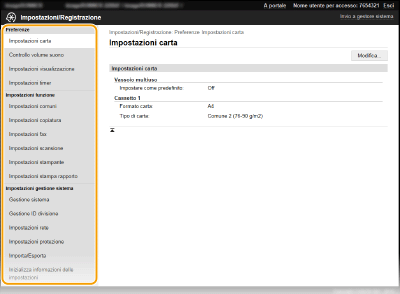 La modifica di alcune impostazioni richiede prima l'accesso nel Modo gestore sistema.
