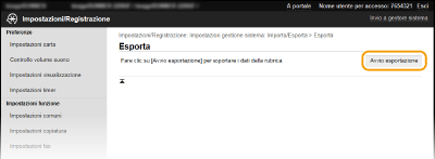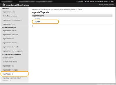 Non utilizzare la macchina durante il processo di importazione/esportazionePrima di esportare/importare, accertarsi che non siano in corso operazioni come la stampa di documenti.