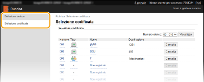 È possibile eliminare una voce registrata facendo clic sul pulsante [Cancella] corrispondente.