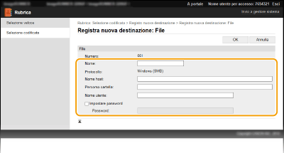 Immettere il nome utente impostato per la cartella condivisa (lungo al massimo 32 caratteri).