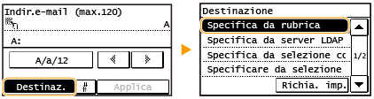 Prima di utilizzare questa funzionalità, occorre registrare le destinazioni nella Rubrica. Registrazione nella Rubrica