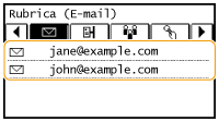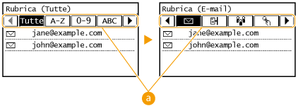 La Rubrica consente di specificare una destinazione selezionandola da un elenco di destinazioni registrate o tramite ricerca per nome delle destinazioni con i nomi dei destinatari.