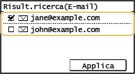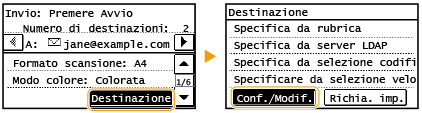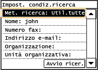 Se nell'ufficio è installato un server LDAP, è possibile specificare una destinazione utilizzando le informazioni utente nel server. Accedere al server LDAP tramite la macchina e cercare le informazioni utente appropriate e specificarle come destinazione.