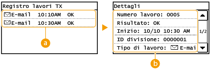 Quando <Visualizzazione registro lavori> è impostato su <Off>, non è possibile controllare i registri per i documenti inviati. Visualizzazione registro lavori