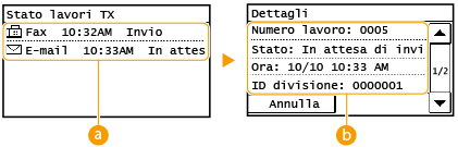 ![]() <Stato lavori TX>Visualizza un elenco dei documenti in corso di invio o in attesa di elaborazione.