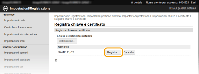 Fare clic su [Registra chiave e certificato] o [Registra certificato CA].