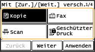 Tippen Sie auf <Zurück> oder <Weiter>, um die Schaltfläche zu verschieben, und tippen Sie auf <Anwenden>.