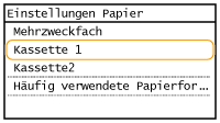 Wenn Sie Papier in der Papierkassette 1 oder Papierkassette 2 registrieren möchten
