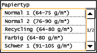 Wählen Sie den Typ des eingelegten Papiers aus.
