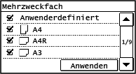 Papierformate ohne Haken werden auf dem Bildschirm <Papierformat (Andere Formate)> angezeigt.