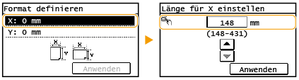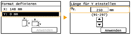 Geben Sie die Länge der <Y>-Achse der Seite ein, und tippen Sie auf <Anwenden>.