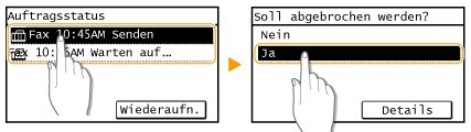 . Sie können das Versenden von Faxen auch nach der Überprüfung des Faxstatus abbrechen.