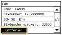 / zwischen den angegebenen Empfängern umschalten. Zeigen Sie den Empfänger an, den Sie löschen möchten, und drücken Sie . |