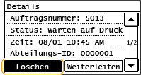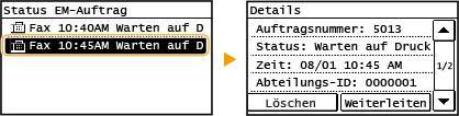 Sie können detaillierte Informationen über die gespeicherten Dokumente anzeigen, einschließlich der Faxnummern der Absender und der Anzahl der empfangenen Seiten, und nicht benötigte Dokumente dann löschen.