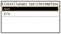 Um im Speicher empfangene Dokumente zu drucken, setzen Sie <Einstellungen Speicherempfang> auf <Aus>. Alle Dokumente im Speicher werden gedruckt.