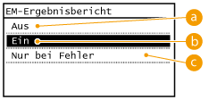 Wählen Sie diese Einstellung, wenn ein EM-Ergebnisbericht nur bei einem Empfangsfehler gedruckt werden soll.