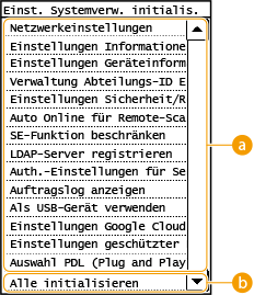 Sie können zum Initialisieren der Einstellungen unter <Netzwerkeinstellungen> auch folgendermaßen vorgehen: Tippen Sie auf <Menü>