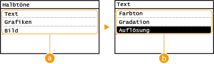 Wählen Sie das Objekt, für das die Einstellung geändert werden soll. <Text> steht für Buchstaben und Zeichen, <Grafiken> steht für Linien und Abbildungen und <Bild> steht für Fotos und Bilder.