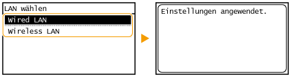 Tippen Sie auf <Wired/Wireless LAN wählen>.