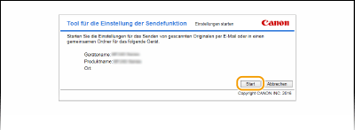 Klicken Sie für [Tool für die Einstellung der Sendefunktion] auf [Starten].