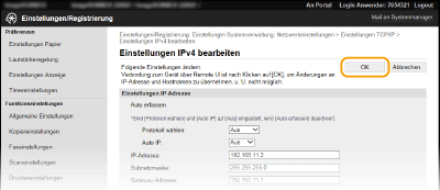 Klicken Sie in [Einstellungen IPv4] auf [Bearbeiten].