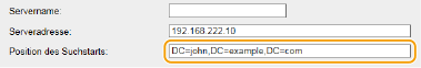 Geben Sie den Knoten im Directory Information Tree (DIT) an, bei dem die Suche beginnen soll. Wenn Sie das Textfeld leer lassen, beginnt das Gerät bei einem automatisch nach dem Zufallsprinzip ausgewählten Knoten mit der Suche.