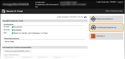 Starten Sie Remote UI, und melden Sie sich im Systemmanager-Modus an.