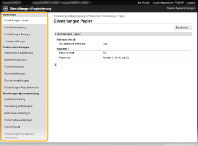 Sie müssen sich für einige Einstellungen zuerst im Systemmanager-Modus anmelden, bevor Sie diese verändern können.