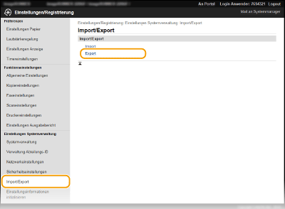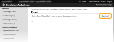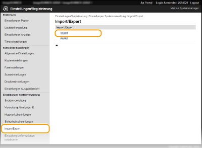 Bedienen Sie das Gerät während des Export- bzw. Importvorgangs nicht.Vergewissern Sie sich vor dem Export bzw. Import, dass zurzeit keine Funktionen wie das Drucken von Dokumenten ausgeführt werden.