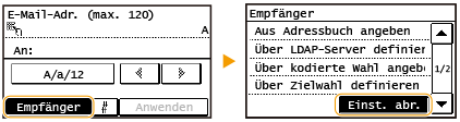 Wenn Sie mit dieser Funktion einen Empfänger angeben, werden alle bereits angegebenen Empfänger gelöscht.