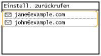 Sie können einen Empfänger aus den drei zuletzt verwendeten Empfängern auswählen. Wenn Sie einen zuvor verwendeten Empfänger angeben, verwendet das Gerät dieselben Scaneinstellungen, wie beispielsweise die Dichte, die beim letzten Senden von Dokumenten an diesen Empfänger eingestellt waren.