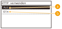 HTTP wird für die Kommunikation über das Netzwerk verwendet, also beispielsweise beim Zugriff auf das Gerät über Remote UI. Wenn Sie eine USB-Verbindung verwenden oder HTTP aus einem anderen Grund nicht verwenden, können Sie HTTP deaktivieren und so böswillige Angriffe Dritter über den nicht genutzten HTTP-Port blockieren.