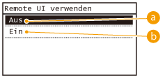 Remote UI ist nützlich, da Sie die Geräteeinstellungen über einen Web-Browser auf einem Computer festlegen können. Das Gerät muss mit einem Computer im Netzwerk verbunden sein, damit Sie Remote UI verwenden können. Wenn Sie Remote UI nicht benötigen, können Sie Remote UI deaktivieren und so das Risiko verringern, dass ein böswilliger Dritter das Gerät über das Netzwerk fernsteuert.