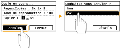 Appuyez sur <Annuler> sur l'écran qui apparaît au cours de la copie