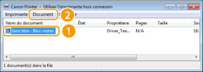 Sélectionnez le document dont vous voulez annuler l'impression et cliquez sur [Document]