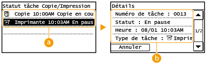 Si <Afficher le journal des tâches> est réglé sur <Désactivé>, vous ne pouvez pas consulter les journaux des impressions. Afficher le journal des tâches