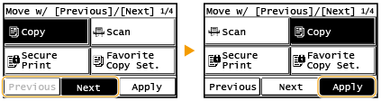 Tap <Previous> or <Next> to move the button, and tap <Apply>.