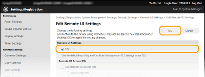 Enabling TLS for e-mailingIf the SMTP server and the POP3 server support TLS, you can enable TLS for communication with these servers (Configuring E-Mail Communication Settings). For more information about the SMTP server and the POP3 server, contact your Internet service provider or Network Administrator.