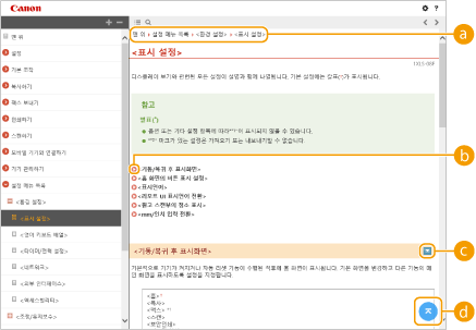 클릭하여 글자 크기 및 레이아웃과 같이 사용자 안내서의 표시 방법을 결정하는 매개 변수를 설정합니다.