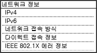 기기의 IP 주소 등의 네트워크 설정 및 무선 LAN 통신 상태 등의 상태를 표시합니다.