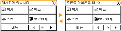 <메시지가 있습니다.> 또는 <오른쪽 아이콘을 탭 ->>가 표시되는 경우