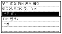 로그온 화면이 표시되었을 때 아래의 절차에 따라서 부서 ID 및 PIN을 입력하십시오.