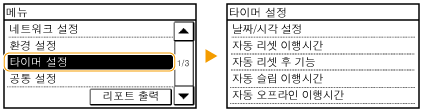 기기가 지정된 시간 동안 유휴 상태인 경우 자동으로 표시되는 화면을 변경하려면: