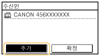 원하는 모든 수신인을 등록할 때까지 8단계와 9단계를 반복한 다음 <확정>을 누릅니다.