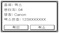 <예>를 누릅니다.2단계에서 그룹 다이얼을 지정한 경우 "XX 건"이 표시됩니다. <수신인건>을 누르면 그룹 다이얼에 등록된 수신인이 표시됩니다.
