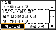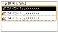 / 를 눌러 지정한 수신인을 전환할 수 있습니다. 삭제하려는 수신인을 표시하고 를 누릅니다. |