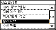 ![]() <송신작업 이력>/<수신작업 이력>송신 및 수신한 문서 목록을 표시합니다. 문서를 성공적으로 송신하거나 수신한 경우 <OK>가 표시되고 취소되거나 에러가 발생하여 문서를 송신하거나 수신하지 못한 경우 <에러>가 표시됩니다.
