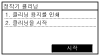 화면의 지시를 따라 클리닝용 종이를 인쇄될 면이 위로 향하게 수동 급지대에 세트한 후 <확인>를 누릅니다.