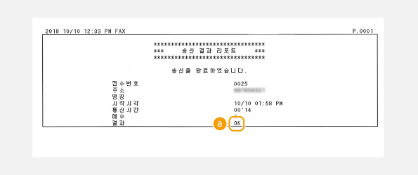 팩스 전송의 통신 결과를 팩스 송신 결과 리포트를 인쇄하여 확인할 수 있습니다. 전송이 완료될 때마다 또는 발신 에러가 발생한 경우에만 리포트를 인쇄할 수 있습니다.