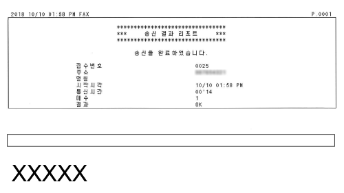<설정> 또는 <에러시에만>을 선택한 경우 팩스 문서의 일부분이 이 리포트에 포함될 수 있습니다. <송신 원고 표시>를 <설정>으로 누르십시오. 하지만 팩스 드라이버에서 보낸 송신 작업은 이 리포트에서 생략됩니다.